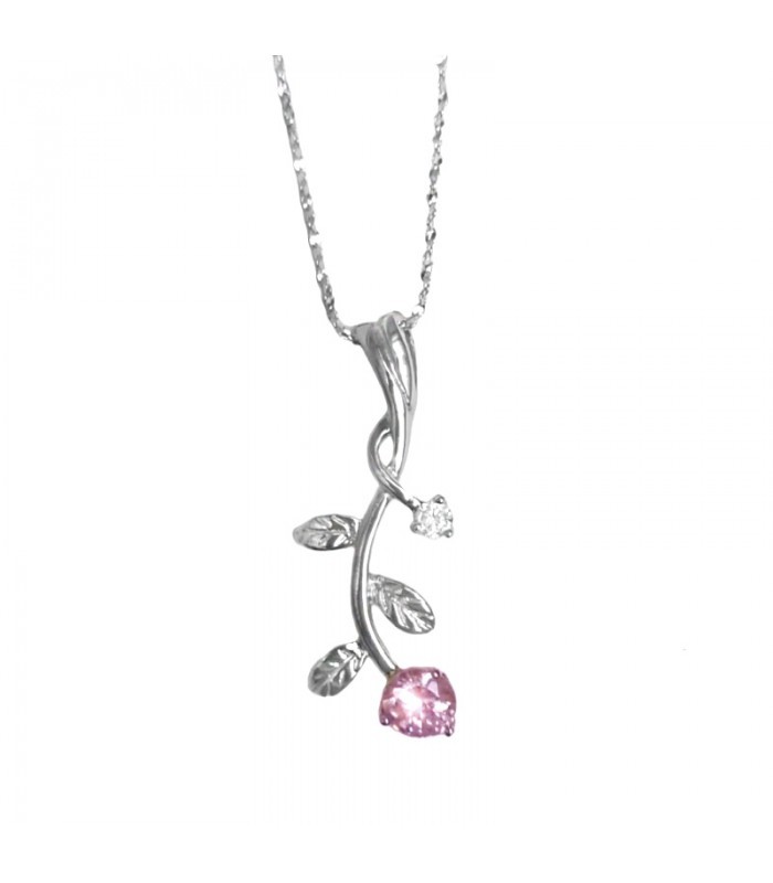 Ezüst rózsaszál nyaklánc, pink kristállyal