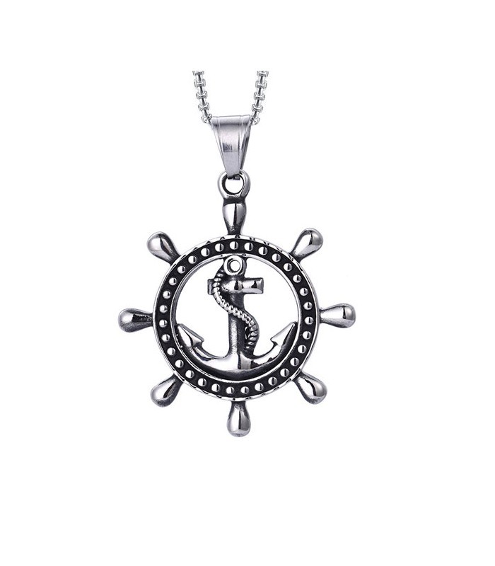 Kiváló minőségű, antiallergén nemesacélból készült, hajókereket mintázó, horgony díszes antikolt medál nyaklánccal.
