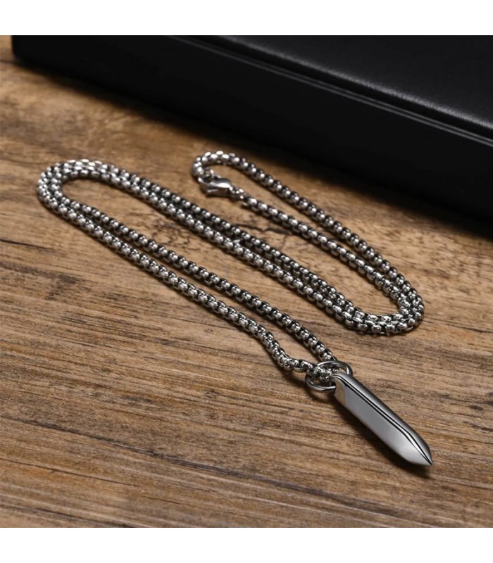Nemesacél hasáb medál, nyakláncon
