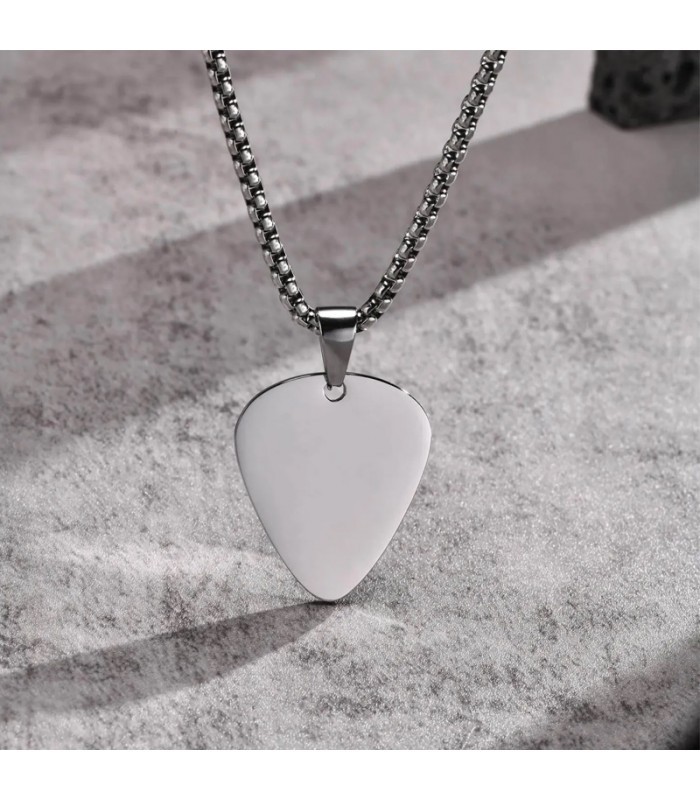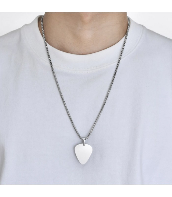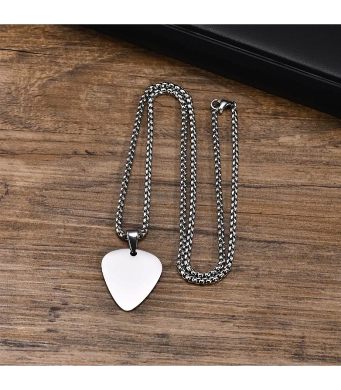 Kiváló minőségű, antiallergén nemesacélból készült, gitárpengető formájú medál nyaklánccal.