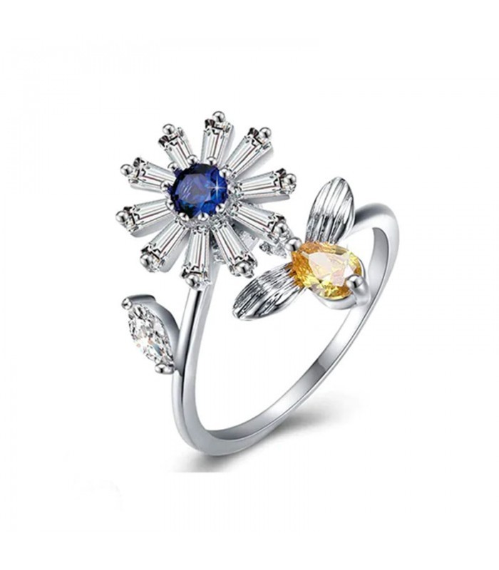 Ragyogó kristályos stresszoldó gyűrű - Virág és méhecske