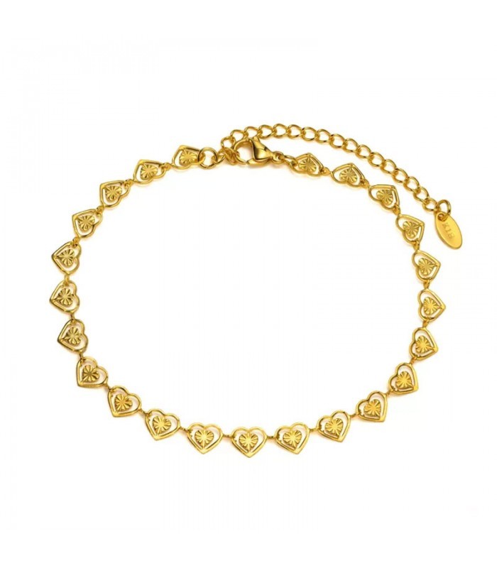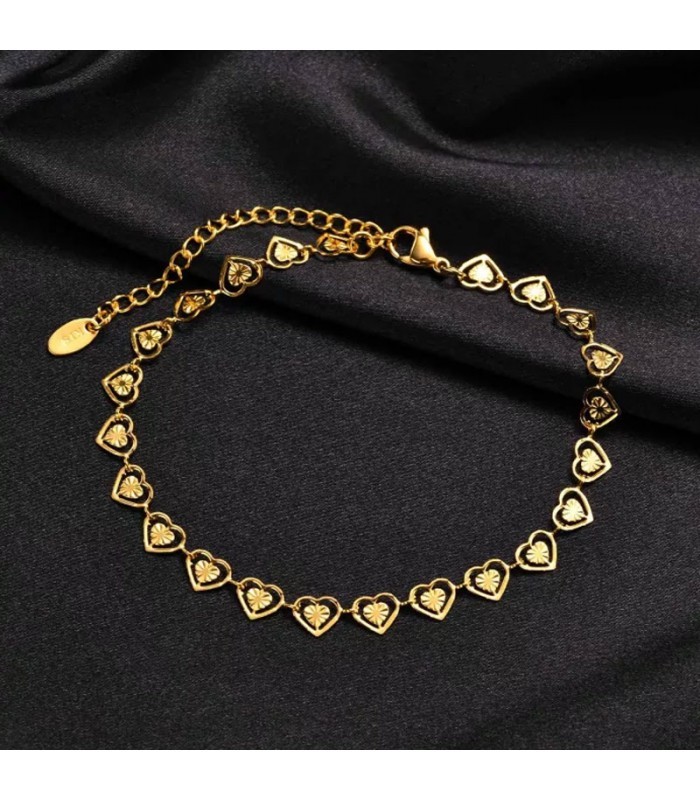 Kiváló minőségű 316L nemesacél bokalánc, szív elemekkel díszítve, tartós (IP) arany bevonattal.