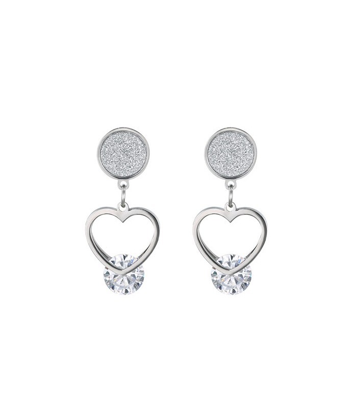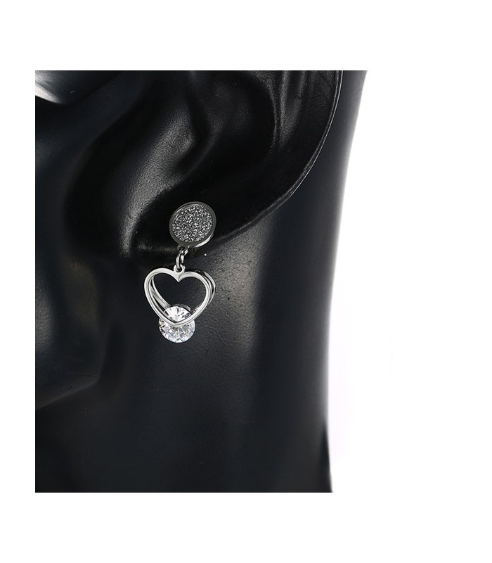 Cirkónia köves, szív díszes nemesacél fülbevaló