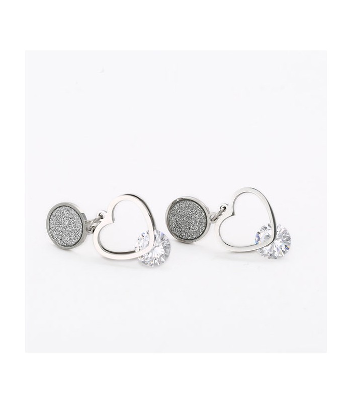 Stílusos, kör és szív alakú nemesacél fülbevaló, cubic zirconia kővel díszítve.