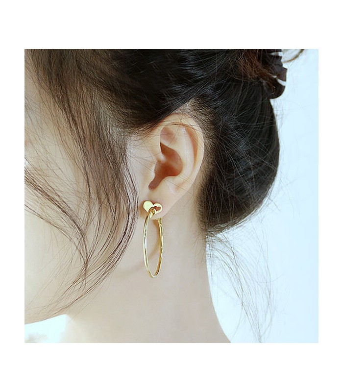 Kiváló minőségű, antiallergén 316L nemesacélból készült, egyedi, szív formával díszített karika fülbevaló. Tartós (IP) arany bevonattal.