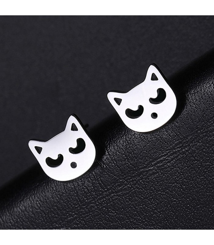 Antiallergén nemesacélból készült, cica formájú fülbevaló pár.