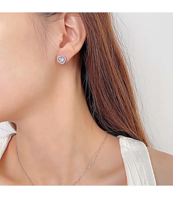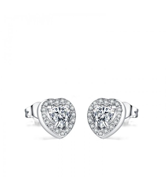Antiallergén 316L nemesacélból készült, szív alakú fülbevaló, cirkónia kristályokkal.