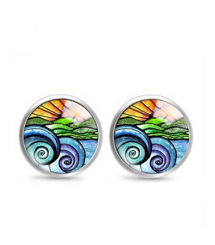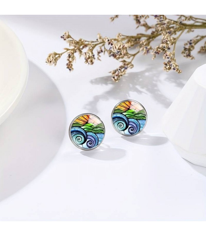 Antiallergén 316L nemesacélból készült, kör alakú fülbevaló, kreatív, színes mintával.