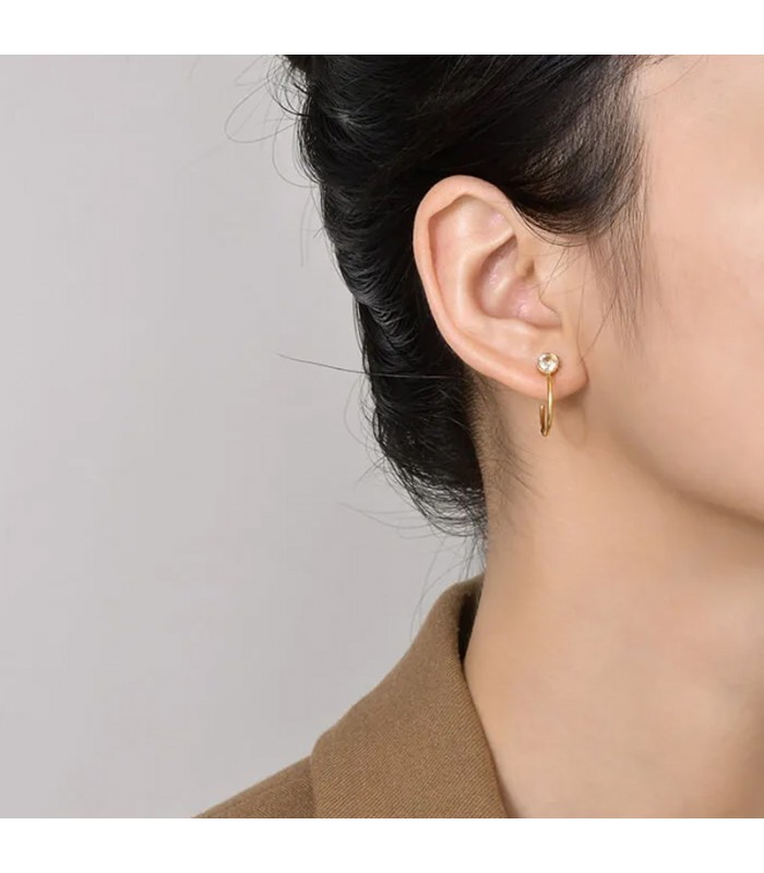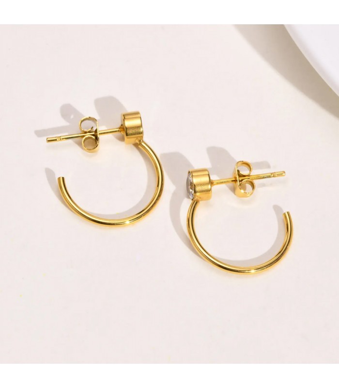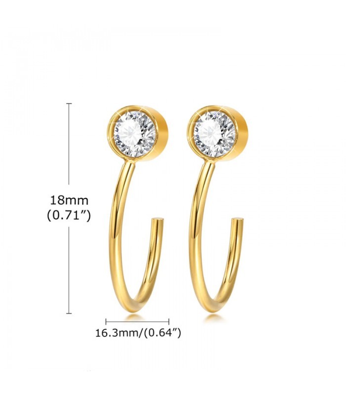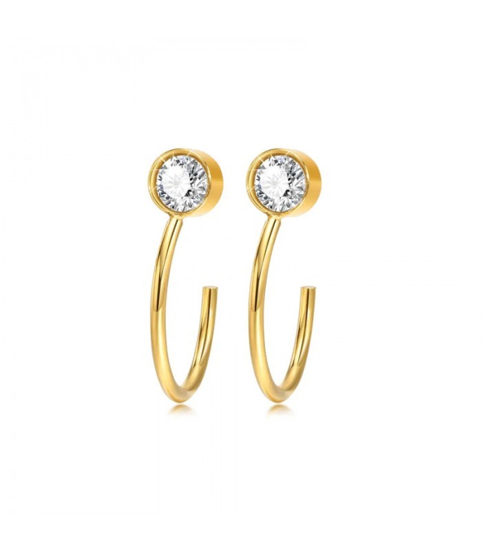 Antiallergén 316L nemesacélból készült elegáns fülbevaló, 18k arany bevonattal, cirkónia kristállyal díszítve.