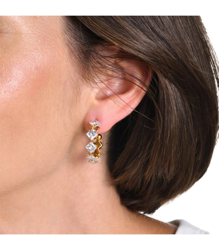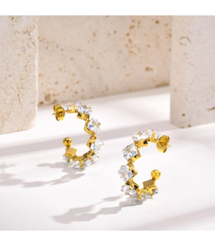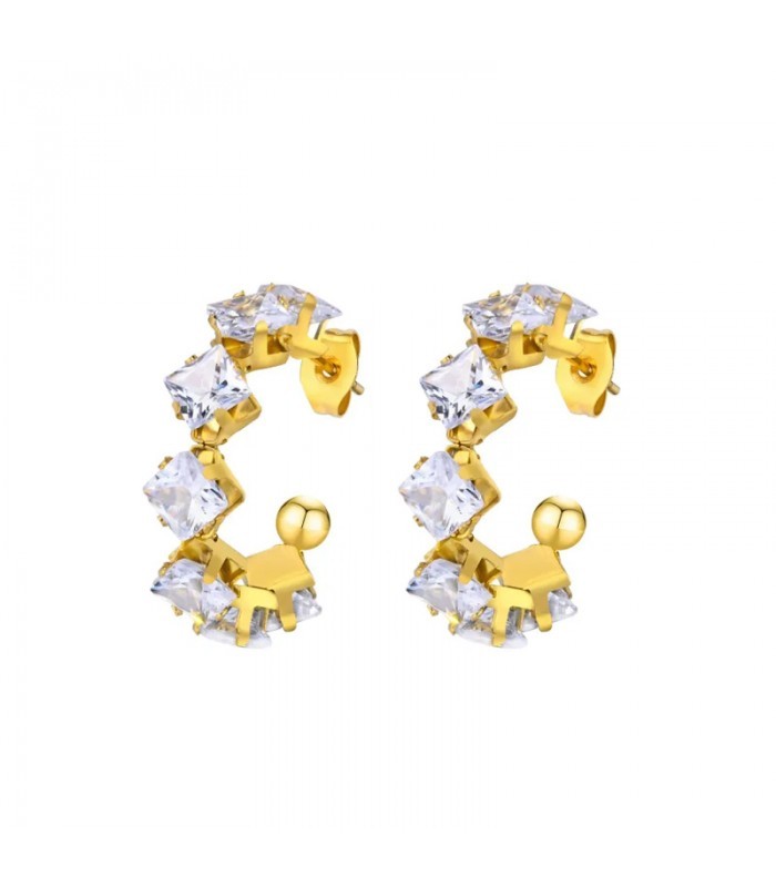 Antiallergén 316L nemesacélból készült elegáns fülbevaló, 18k arany bevonattal, cirkónia kövekkel díszítve.
