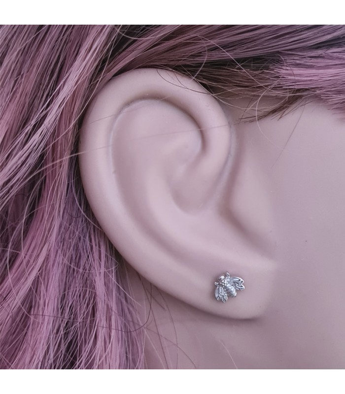 Antiallergén 316L nemesacélból készült, légy alakú piercing fülbevaló. Csavaros, gömb alakú véggel.