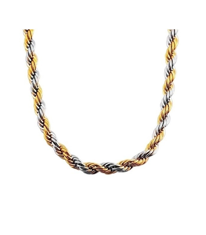 Kiváló minőségű, antiallergén 316L nemesacélból készült, sodort láncszemes, kéttónusú uniszex nyaklánc. Tartós IP arany bevonattal.