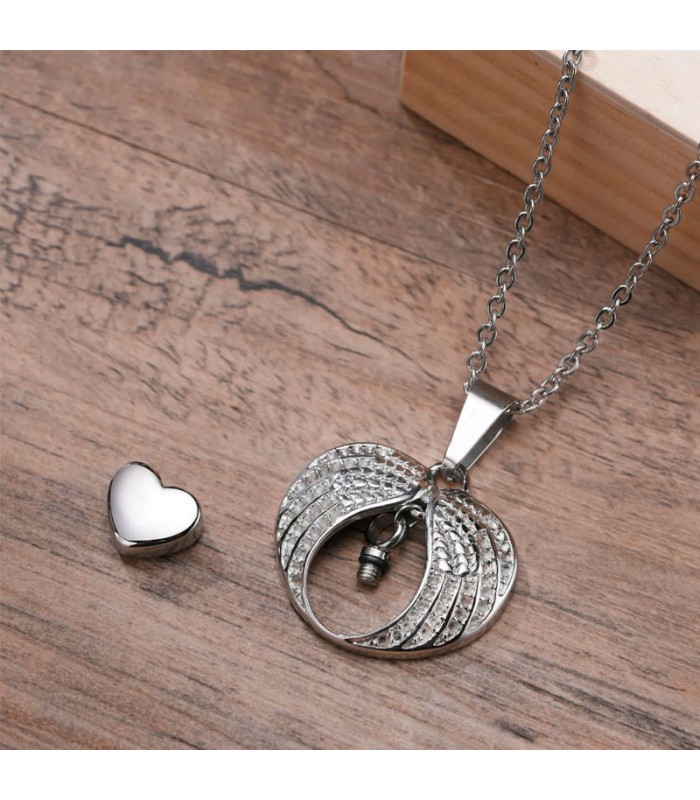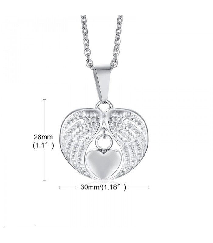 Angyalszárny nemesacél urna medál nyakláncon, tölcsérrel